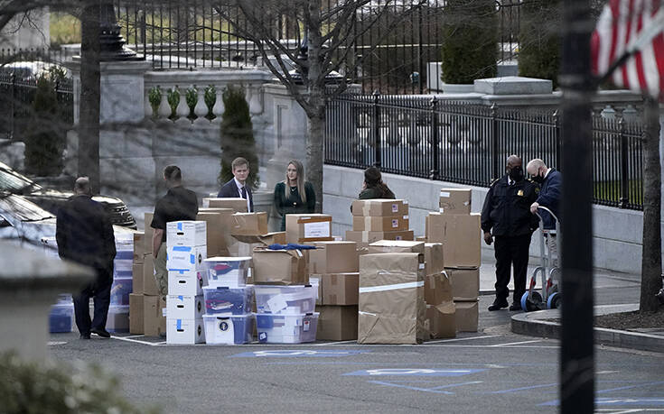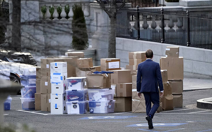 Πλαστικά κουτιά, χαρτόκουτα αλλά και μεμονωμένα πράγματα, όπως κορνίζες, έχουν βγει από τον Λευκό Οίκο προκειμένου να μπουν στο φορτηγό το οποίο είναι σταθμευμένο στο σημείο. Στιγμιότυπα από τη μετακόμιση αυτή έχουν ήδη διαρρεύσει και στα social media και έχουν προκαλέσει κύμα αντιδράσεων καθώς σύμφωνα με τα όσα υποστηρίζουν, η κίνηση αυτή είναι παράνομη και τα πράγματα πρέπει να μείνουν εντός του Λευκού Οίκου.