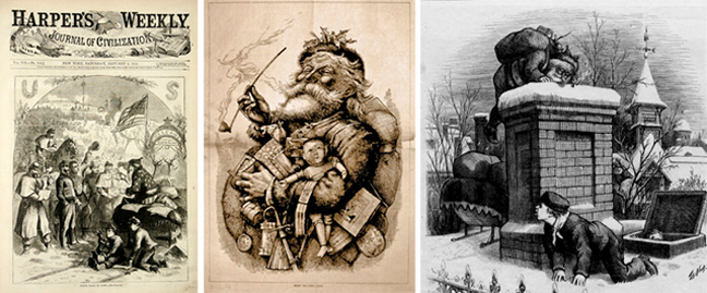 Ο καρτουνίστας του 19ου αιώνα με τις σοβαρές πολιτικές και κοινωνικές αιχμές στη δουλειά του όταν δεν σατίριζε τους πολιτικούς της Νέας Υόρκης, πρόσφερε τις παλιότερες ιστορικά εικονογραφήσεις του πώς θα έμοιαζε ο Άγιος Βασίλης. Ο Nast απαθανάτισε πρώτος τον άγιο να βολτάρει πάνω στις στέγες, ενώ σε αυτόν χρωστάμε επίσης τη χαρακτηριστική φορεσιά του. Κι αν τα Χριστούγεννα αντανακλούν εικονογραφικά ακόμα και σήμερα τη Βικτοριανή Αγγλία ή την Αμερική του 19ου αιώνα (τον αγγλοσαξονικό κόσμο εν γένει δηλαδή), ήταν η καταιγιστική επίδραση του Nast που ευθύνεται γι’ αυτό. Όλες μα όλες οι κατοπινές εικονογραφήσεις του Santa βασίστηκαν πάνω στα σχέδια του Nast, εκσυγχρονίζοντας απλώς τον διάκοσμο και το φόντο…