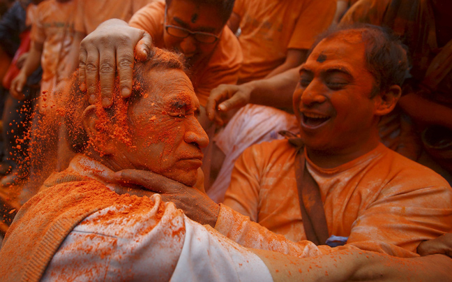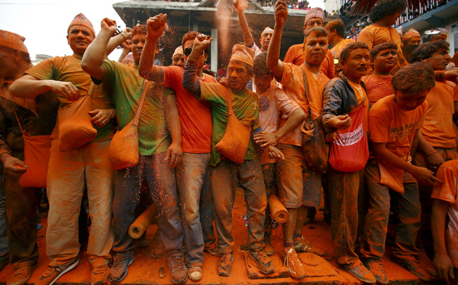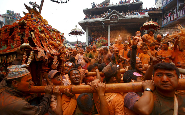 Η ατμόσφαιρα είναι εορταστική στο Νεπάλ όπου εορτάζεται το «Sindoor Jatra». Με χορούς και τραγούδια οι Νεπαλέζοι σηματοδοτούν την αλλαγή του χρόνου αλλά και τον ερχομό της άνοιξης.