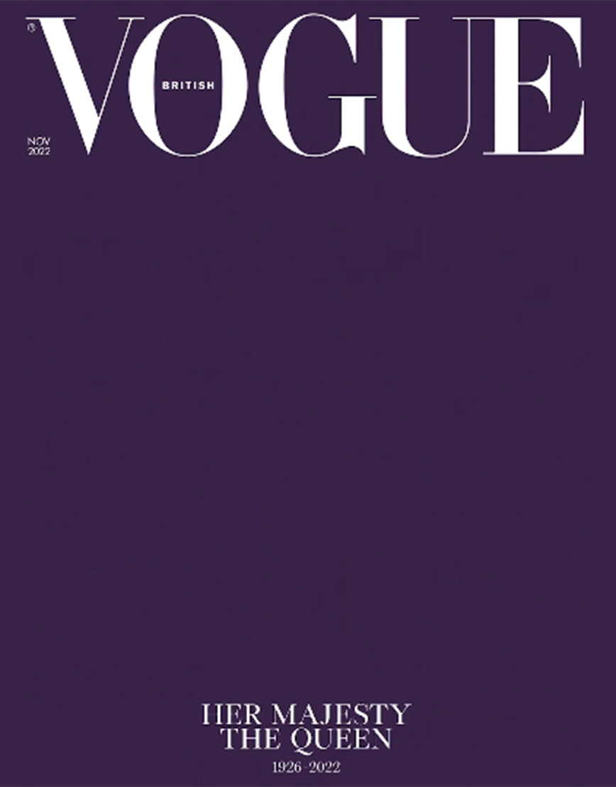 Το εξώφυλλο για το τεύχος Νοεμβρίου στο βρετανικό περιοδικό «Vogue» θα είναι διαφορετικό. Χωρίς φωτογραφία, αλλά με έντονο βασιλικό μωβ χρώμα, θα είναι ένας φόρος τιμής για τη βασίλισσα Ελισάβετ. Μόνο στο κάτω μέρος θα υπάρχουν οι λέξεις με κεφαλαία γράμματα «Her Majesty, the Queen» μαζί με την ένδειξη «1926-2022».