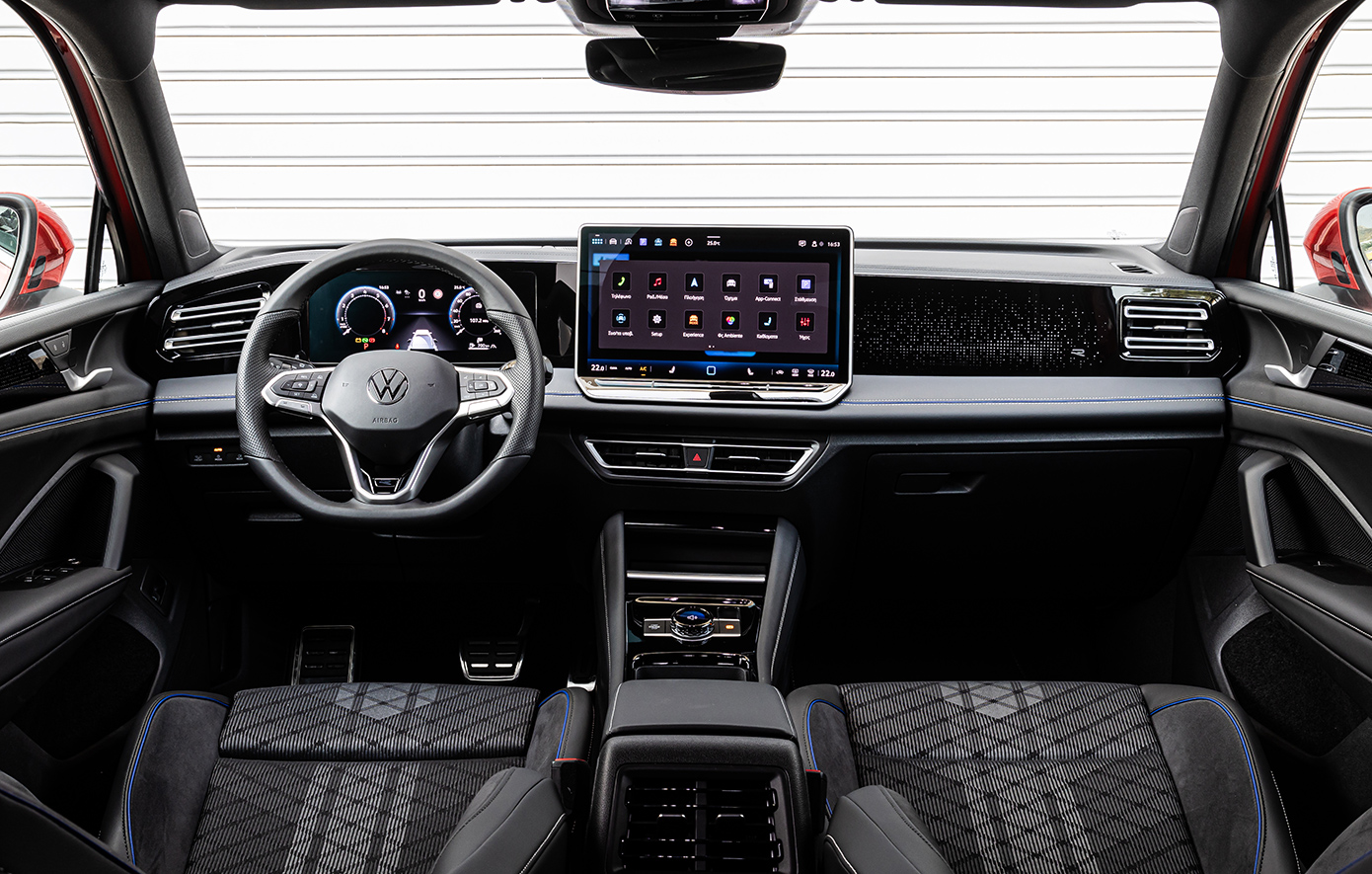 Στο εσωτερικό άμεσα διακριτή είναι η καινούργια σχεδίαση του ταμπλό με τα στοιχεία της 4ης γενιάς του modular infotainment matrix (MIB4) που είναι διαισθητικό στη λειτουργία, προσφέρει άριστη συνδεσιμότητα και έξυπνο σχεδιασμό με νέο εύχρηστο λογισμικό. Οι επιμέρους τομείς περιλαμβάνουν το νέο Digital Cockpit Pro (ψηφιακός πίνακας οργάνων με αντι-ανακλαστική επίστρωση σε μορφή tablet landscape), μια μεγάλη οθόνη infotainment με διαγώνιο 12,9 ίντσες, ή – προαιρετικά – 15,0 ίντσες, με εντελώς νέα δομή μενού και γραφικών, ένα καινούργιο head-up display (προβολή στο παρμπρίζ) και το νέο κεντρικό διακόπτη Driving Experience Control με ενσωματωμένη οθόνη TFT LCD. O ψηφιακός φωνητικός βοηθός IDA1 είναι επίσης νέος και επιτρέπει τον εύκολο χειρισμό πολυάριθμων λειτουργιών του αυτοκινήτου και του infotainment με τη χρήση φυσικής γλώσσας. Επιπλέον, ο IDA απαντά σε ερωτήσεις για όλα τα πιθανά θέματα. Για να το κάνει αυτό, το σύστημα έχει πρόσβαση σε online βάσεις δεδομένων και – ως νέο χαρακτηριστικό – στο Chat GPT1 (τεχνητή νοημοσύνη, AI), που θα είναι διαθέσιμο ως αναβάθμιση.