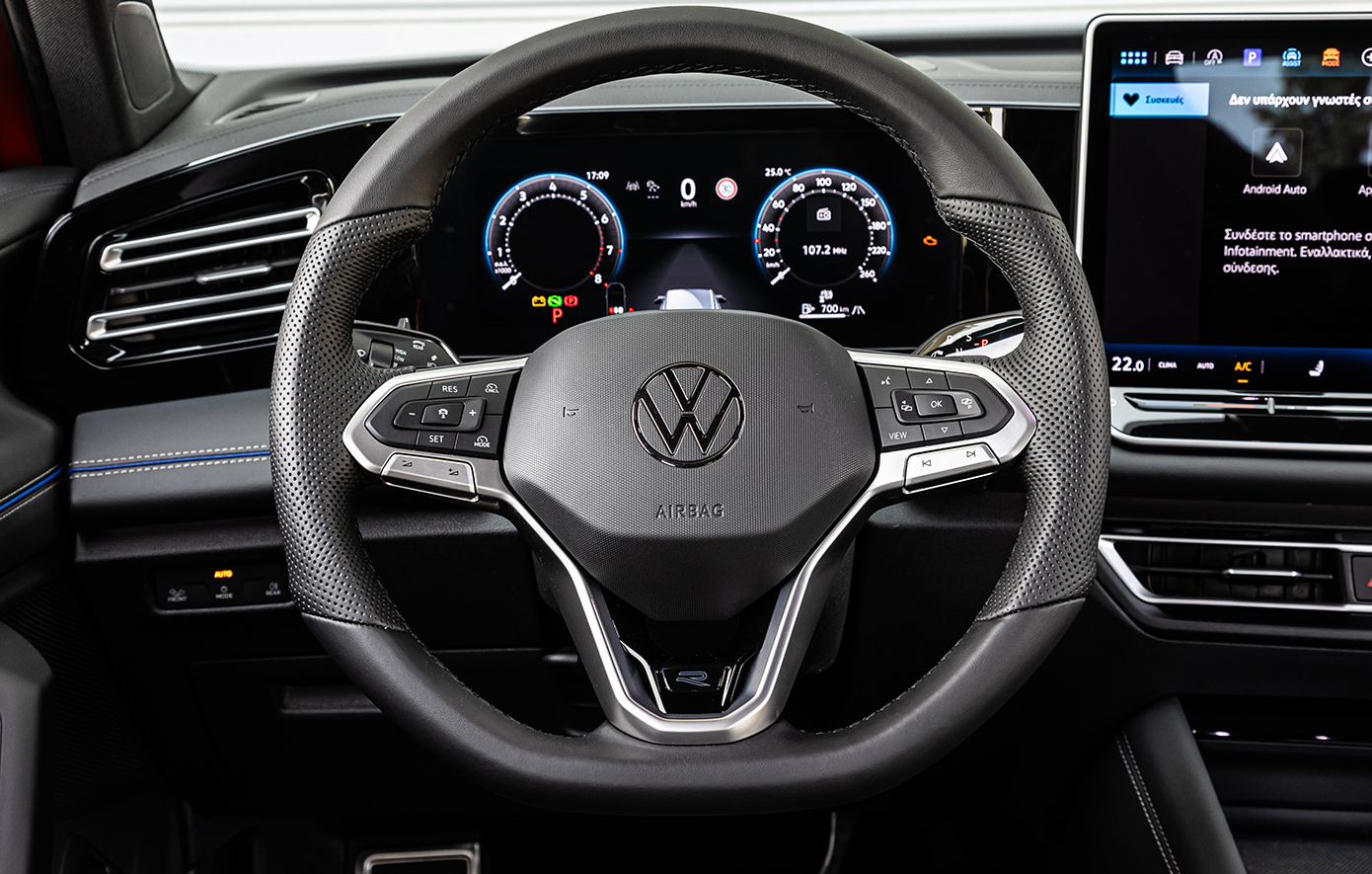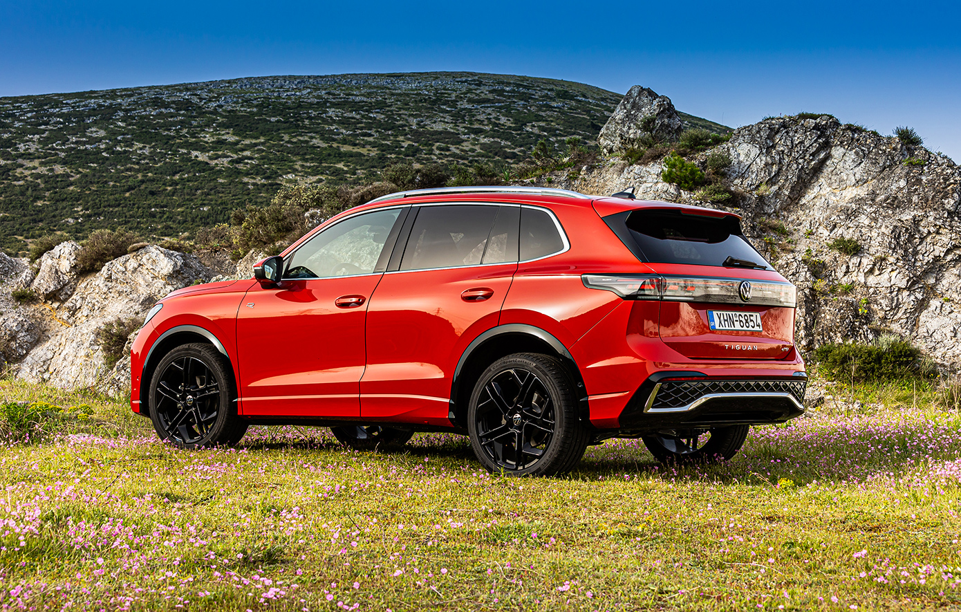 Οδηγώντας για λίγα χιλιόμετρα στους επαρχιακούς δρόμους της Πελοποννήσου την έκδοση eTSI R-Line των 150 ίππων, είχαμε την ευκαιρία να εκτιμήσουμε την ευρύχωρη και πολυτελή καμπίνα επιβατών, που διαθέτει όλες τις σύγχρονες τεχνολογίες, με έμφαση στην ιδιαίτερα ευκρινή και εύχρηστη οθόνη πολυμέσων 15 ιντσών. Το νέο Tiguan ταξιδεύει με άνεση στον αυτοκινητόδρομο, καταναλώνοντας μικρές ποσότητες καυσίμου (είδαμε και 5,5 λίτρα/100 χλμ). Είναι ευθύβολο, με σαφές τιμόνι (κύκλος στροφής 11,7 μ.), ελάχιστο αεροδυναμικό θόρυβο και ενδιάμεσες επιταχύνσεις που διευκολύνουν τα προσπεράσματα.