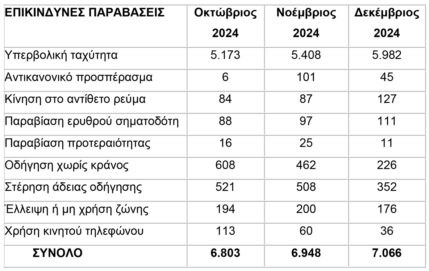Πιο αναλυτικά, κατά το τελευταίο τρίμηνο του 2024 βεβαιώθηκαν παραβάσεις που αφορούν σε: