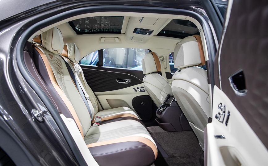 Τα φωτισμένα εξωτερικά μαρσπιέ Mulliner και τα πατάκια με βαθύ πέλος καλωσορίζουν τους επιβάτες στην απόλυτη καμπίνα η οποία προσφέρεται σε οκτώ εξατομικευμένους, τρίχρωμους συνδυασμούς. Οι πελάτες της κορυφαίας Flying Spur μπορούν να επιλέξουν από τρεις κινητήρες, συμπεριλαμβανομένου ενός plug-in υβριδικού συστήματος. Η εισαγωγή της νέας Flying Spur Hybrid βασίζεται στην επιτυχία της τρίτης γενιάς Flying Spur, παρέχοντας την πιο φιλική προς το περιβάλλον Bentley μέχρι σήμερα.