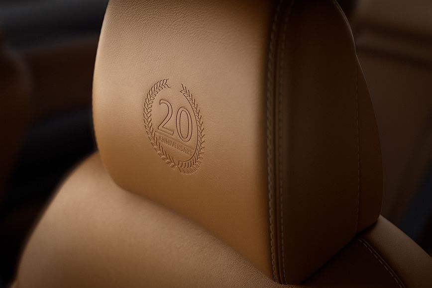 Η επετειακή έκδοση ξεχωρίζει ακόμα για το εσωτερικό του που περιλαμβάνει επένδυση με δερμάτινα ταμπά καθίσματα Nappa, προσκέφαλο μπροστινού καθίσματος με ανάγλυφο λογότυπο 20ης επετείου και ταμπλό με καφέ ματ φινίρισμα.