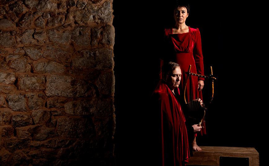 Η σαρωτική ερμηνεία της Ηρώς Μουκίου ακροβατεί στην κυριολεξία πάνω σε μια δοκό, υπό τους ήχους αρχαίας επτάχορδης λύρας, δια χειρός του σπουδαίου Νίκου Ξανθούλη επί σκηνής.
