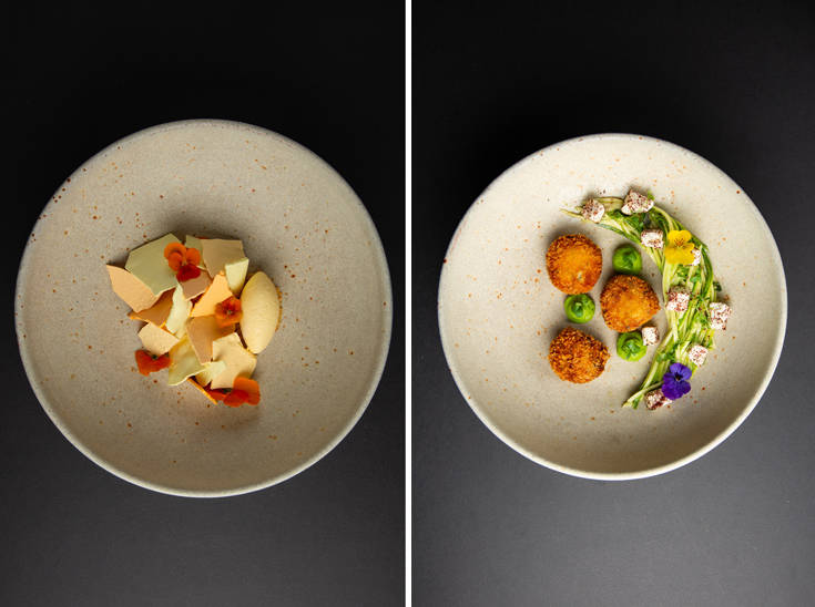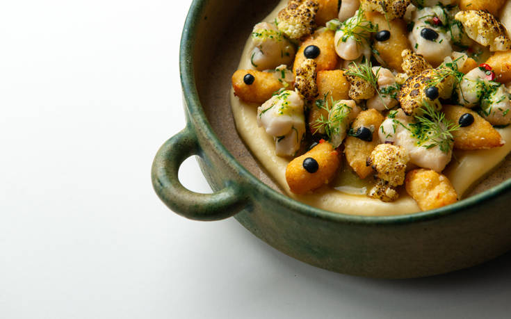 Οι προτάσεις στα ορεκτικά συνεχίζονται με το «Καλαμάρι Σχάρας, με πουρέ μαϊντανόριζας, μπιζέλι, chutney chorizo, γάλα καρύδας και κόλιανδρο», αλλά και με το πολύ διαφορετικό «Σαλάχι με Νιόκι, από μάγουλα από σαλάχι», ενώ στον κατάλογο υπάρχει πάντα η «Ρεβυθάδα με μοσχαρίσιο μεδούλι και καραβίδες».