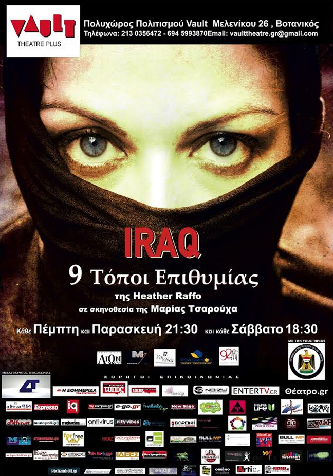 Η θεατρική επιτυχία του off-Broadway «Ιraq – 9 τόποι επιθυμίας» της πολυβραβευμένης συγγραφέως Heather Raffo, κλείνει τον πετυχημένο κύκλο της, το Σάββατο 12 Απριλίου.