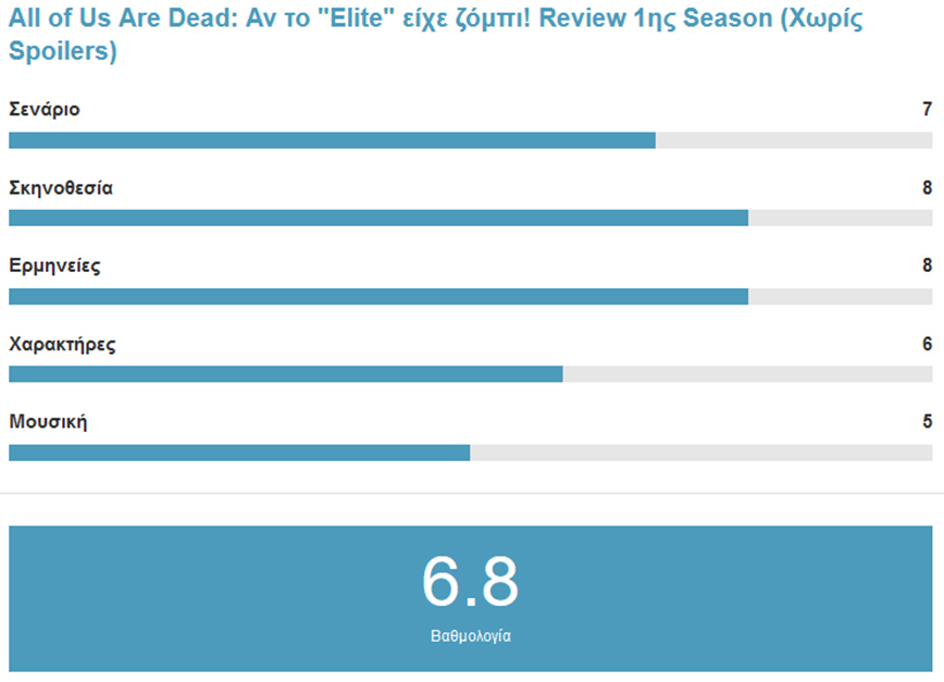 Το All of Us Are Dead είναι σίγουρα μια αξιόλογη προσπάθεια και βλέποντας το θα περάσετε ευχάριστα αν είστε φαν του είδους, μια δεύτερη σεζόν είναι αρκετά πιθανή αν και για εμένα όχι απαραίτητη.