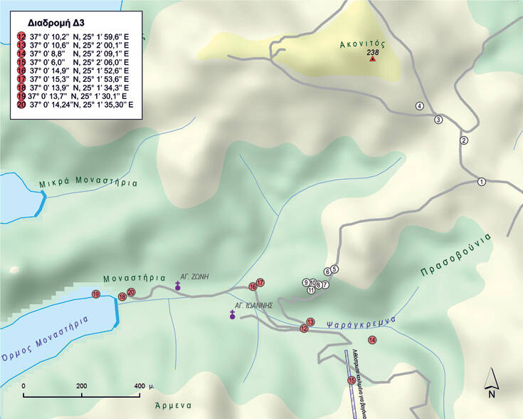 Αυτό επιτυγχάνεται με την παράθεση των μνημείων κατά μήκος των εννέα μεταλλευτικών διαδρομών ή των προεκτάσεών τους, όπως απαντώνται επιτόπου και όπως απεικονίζονται γραμμικά στους μικροχάρτες που ακολουθούν κάθε διαδρομή. Επικουρικά οι χάρτες που δημιουργήθηκαν ειδικά για την έκδοση, συνοδεύονται από τις γεωγραφικές συντεταγμένες σημείων ενδιαφέροντος, διασταυρώσεων κ.λπ.