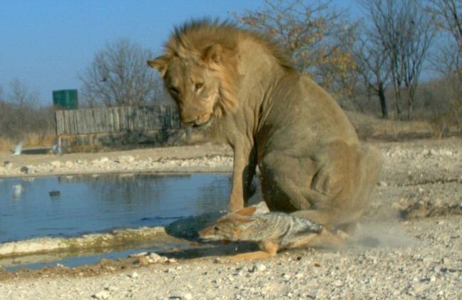 Κάπως έτσι σίγουρα… δεν σκέφτηκε το τσακάλι που βλέπετε στις παρακάτω φωτογραφίες, το οποίο δε δίστασε να επιτεθεί στο τεράστιο, για το μέγεθός του, ζώο!