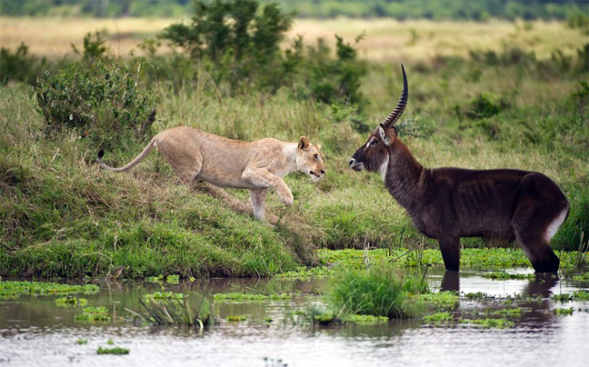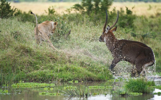 Το λιοντάρι εντόπισε μία αντιλόπη να απολαμβάνει το δροσερό νερό και μάλλον σκέφτηκε πως εξασφάλισε ένα εύκολο γεύμα. Αλλά δεν ήταν καθόλου έτσι.