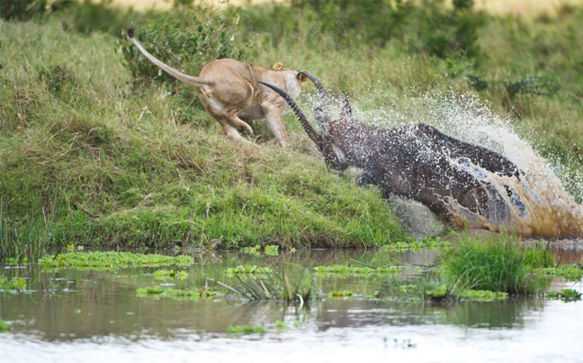 Μερικές φορές όσο δυνατά κι αν βρυχάσαι μπορεί να μην είναι αρκετό. Αυτό το διαπίστωσε με τρόπο οδυνηρό μία αφρικανική λιονταρίνα στο πάρκο Maasai Mara στην Κένυα.