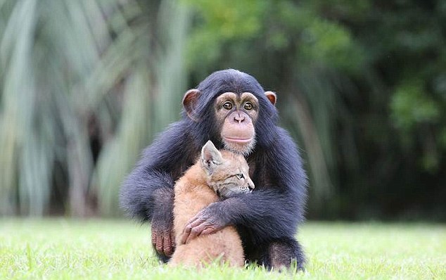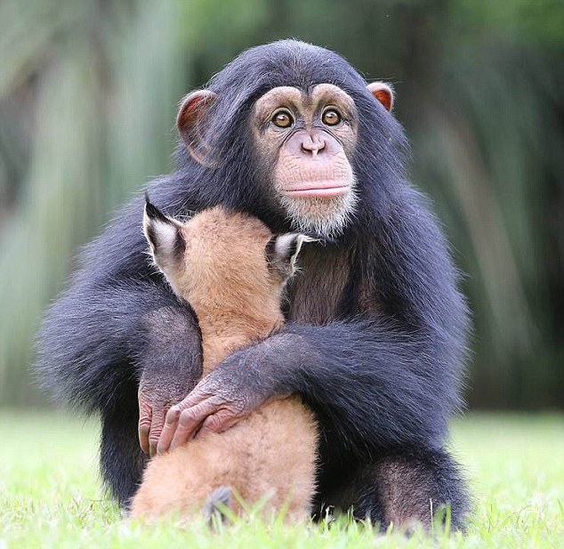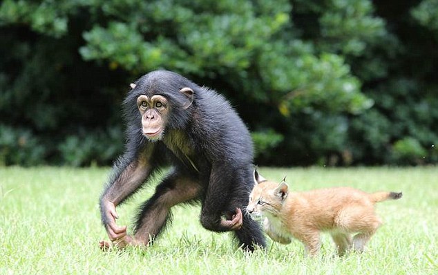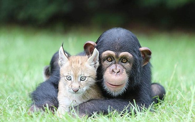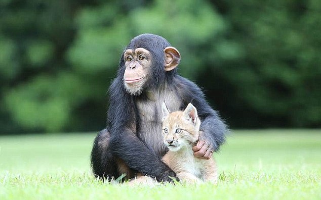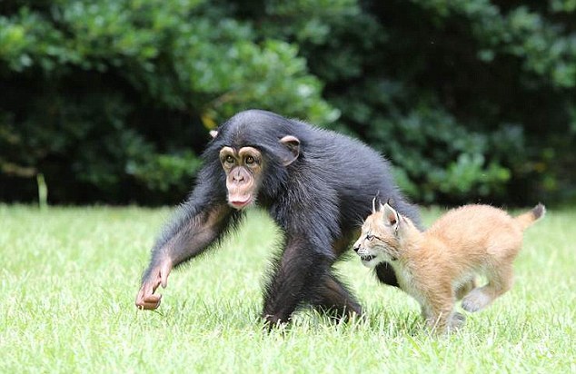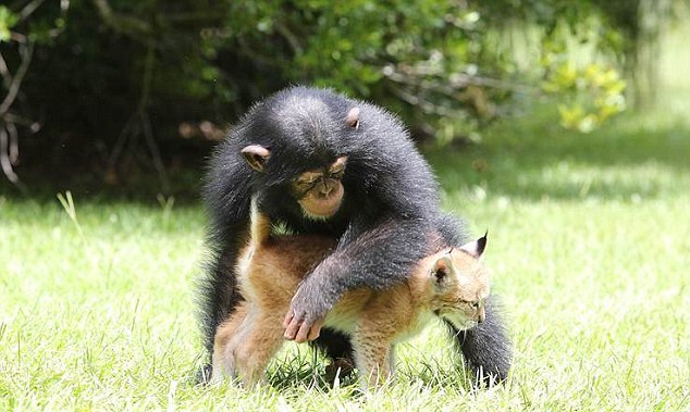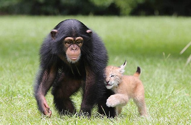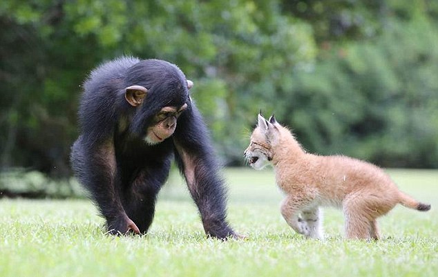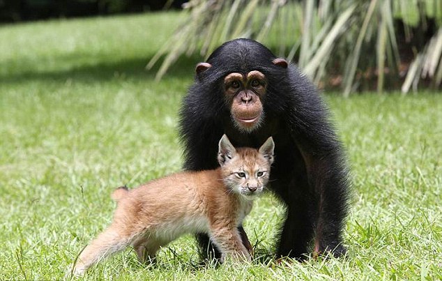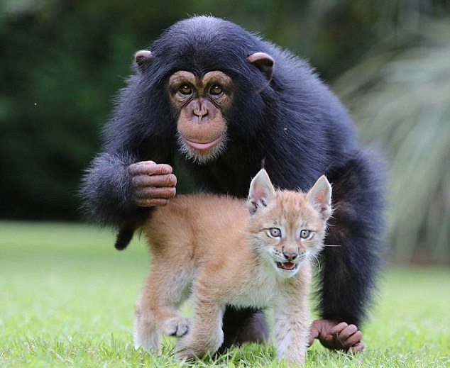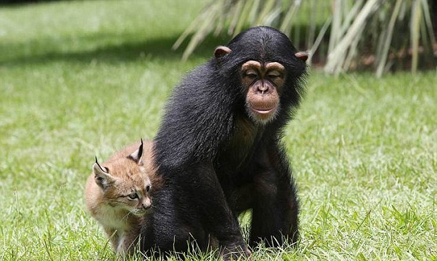 Παρότι η φύση τους είναι διαφορετική, ο μικρός χιμπατζής και ο φίλος του ο λύγκας έχουν γίνει οι καλύτεροι φίλοι.