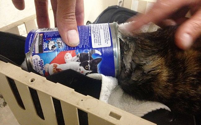 Η συνδρομή πυροσβεστών χρειάστηκε για να απελευθερωθεί ένα πεινασμένο γατάκι που… κόλλησε σε μια κονσέρβα!