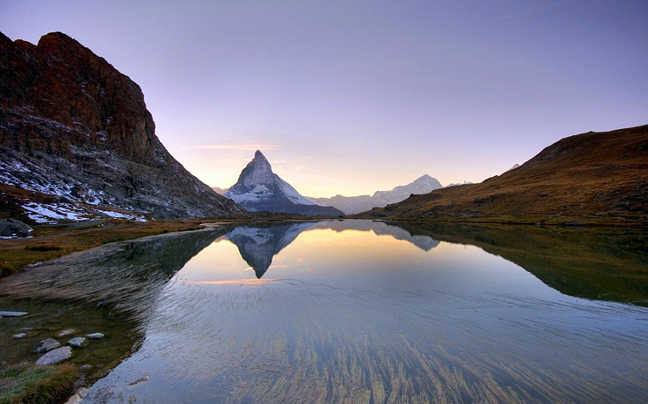 Δύση στην αλπική λίμνη Riffelsee της Ελβετίας.