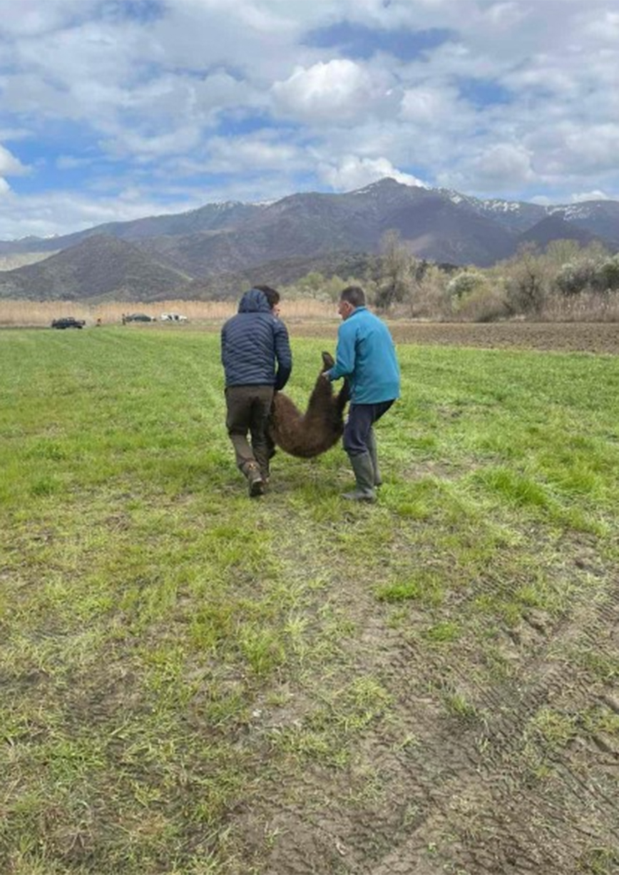 Σύμφωνα με το voria.gr, τα μέλη της ΟΑΕ διαπίστωσαν ότι, παρόλο που το αρκουδάκι ήταν εγκλωβισμένο αρκετές ώρες, ήταν πολύ καλά στην υγεία του. Έτσι, αμέσως μετά τη νάρκωση, με ειδικό αναισθητικό όπλο, την αφαίρεση της θηλιάς και τις πρώτες βοήθειες, ακολούθησε η απελευθέρωσή του. Στο αρκουδάκι (θηλυκό, βάρους 45 κιλών) δεν τοποθετήθηκε ραδιοκολάρο, που θα κατέγραφε την κίνησή του, λόγω του νεαρού της ηλικίας του. Σύμφωνα δε, με τον υπεύθυνο επικοινωνίας της οργάνωσης, Γιώργο Θεοδωρίδη, το αρκουδάκι είναι σε μια ηλικία που είχε ολοκληρώσει την εκπαίδευσή του με τη μητέρα του και μπορεί να ζήσει μόνο του.