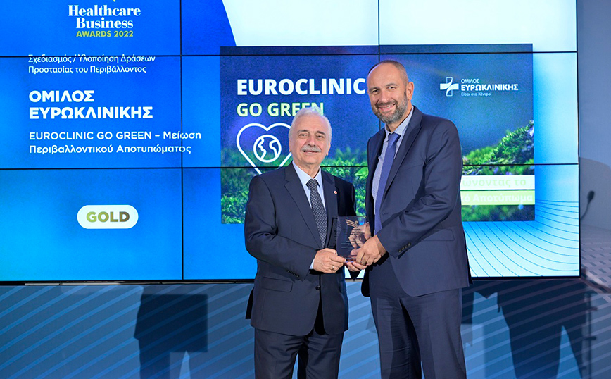 Συγκεκριμένα, ο Όμιλος Ευρωκλινικής έλαβε δύο σημαντικά GOLD βραβεία. Το πρώτο στην κατηγορία «Δράσεων Προστασίας του Περιβάλλοντος» για το σχεδιασμό και υλοποίηση του προγράμματος “EUROCLINIC GO GREEN”, ενός συνόλου ενεργειών και επενδύσεων για τη μείωση του περιβαλλοντικού αποτυπώματος των Κλινικών του Ομίλου και την προστασία του περιβάλλοντος και το δεύτερο GOLD βραβείο στην κατηγορία «Συμβολή στην Απασχόληση» για το πρόγραμμα συστηματικής προσέλκυσης, εκπαίδευσης και επένδυσης στο νεότερο ηλικιακά ανθρώπινο δυναμικό.