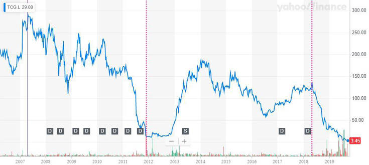 Το 2011 η εταιρία έφτασε σχεδόν προ της κατάρρευσης με τη μετοχή να πέφτει κατά 95% στις 8p (πέννες) δυσκολευόμενη να εξυπηρετήσει ετήσιο χρέος περίπου 170 εκατ. λίρες.