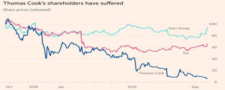 Στις 23 Σεπτεμβρίου 2019 η Thomas Cook κατέρρευσε καθώς οι συνομιλίες με δανειστές, μετόχους και την κυβέρνηση του Ηνωμένου Βασιλείου δεν οδήγησαν σε ένα πακέτο διάσωσης.