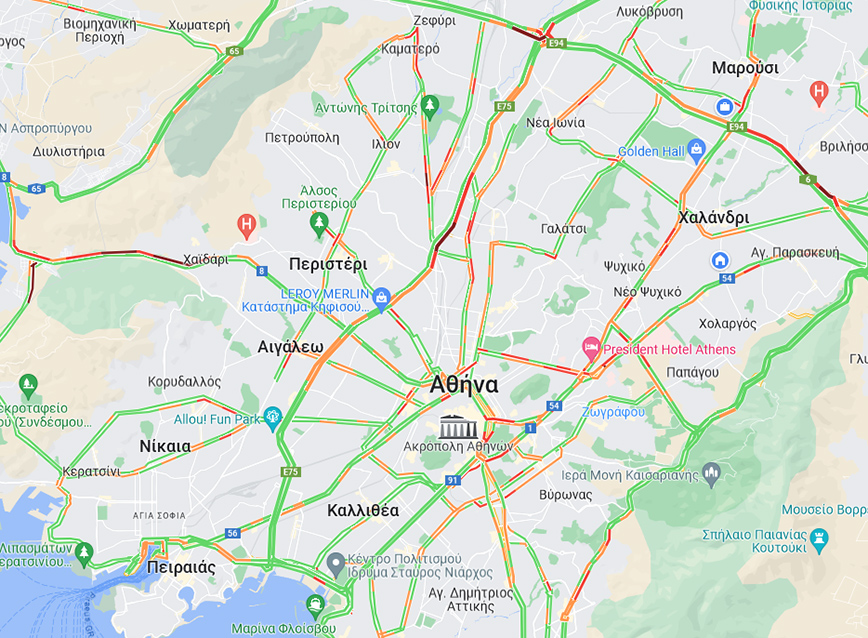 Ο χάρτης με την κίνηση τώρα στους δρόμους…