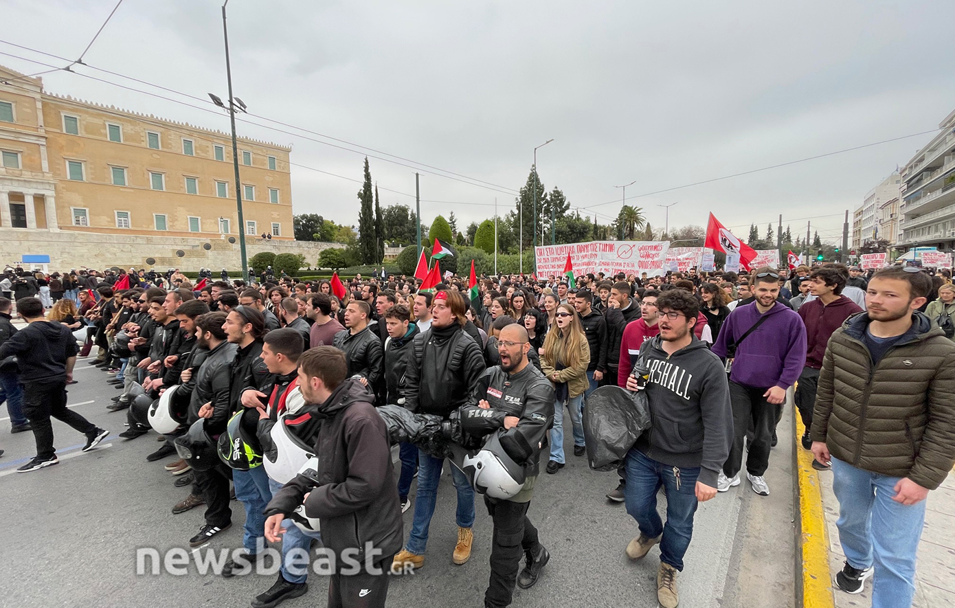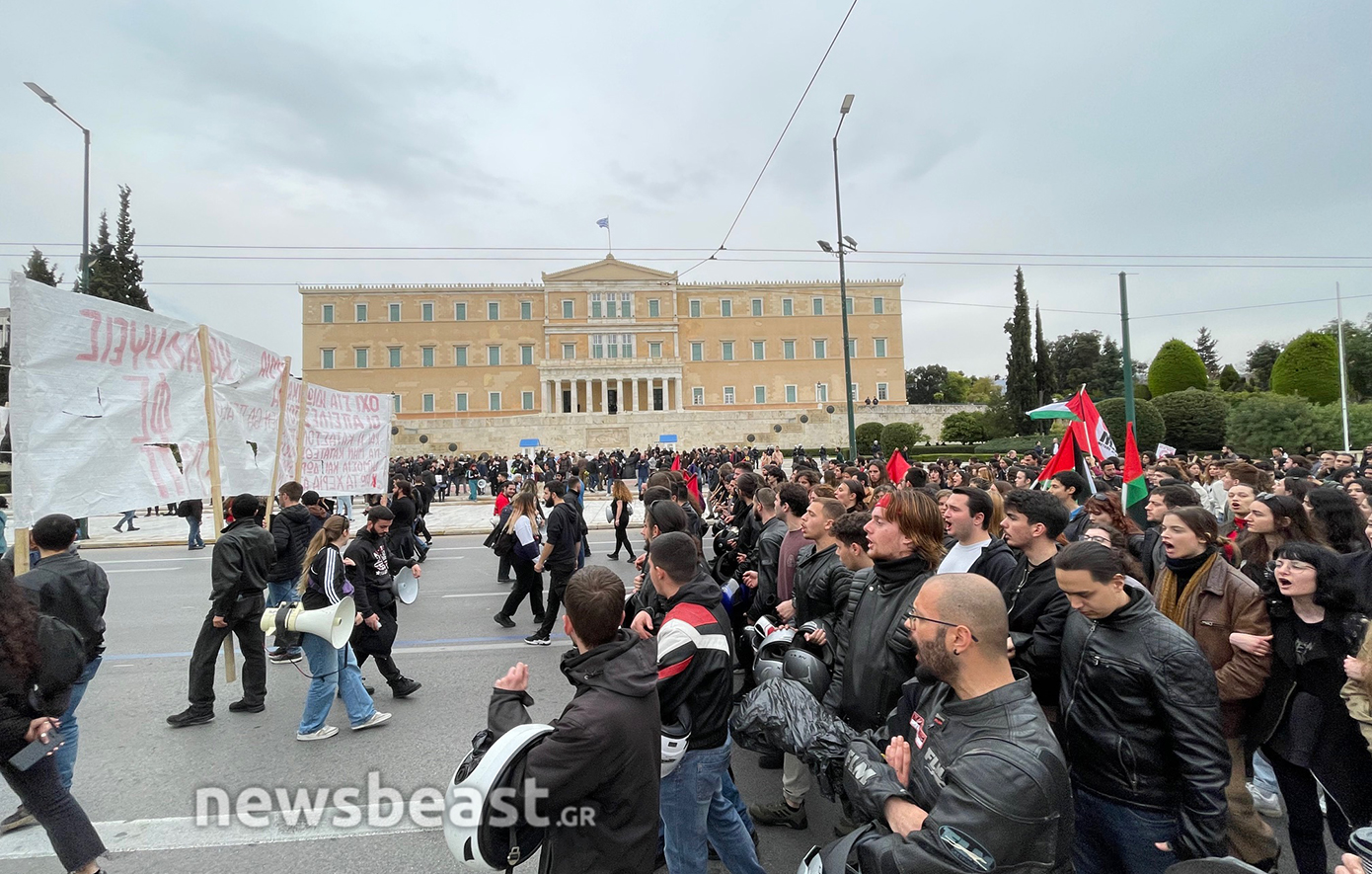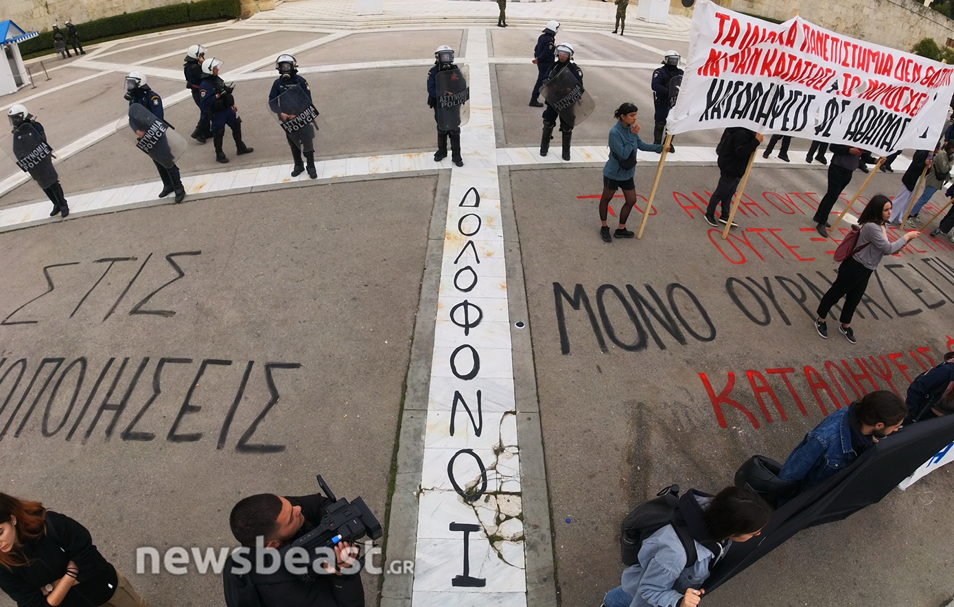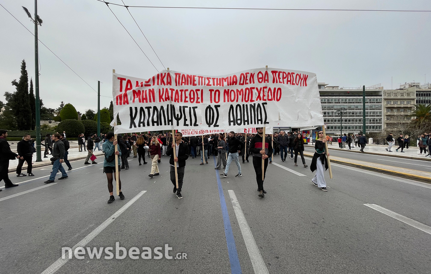Τα ονόματα των 57 θυμάτων του δυστυχήματος των Τεμπών, που γράφτηκαν κατά τη διάρκεια της απεργιακής κινητοποίησης της Τετάρτης και σβήστηκαν από τα συνεργεία του Δήμου το βράδυ της ίδιας μέρας, προκαλώντας αναστάτωση και επικρίσεις, ξαναγράφονται από φοιτητές που πραγματοποιούν διαδήλωση ενάντια στα ιδιωτικά πανεπιστήμια.