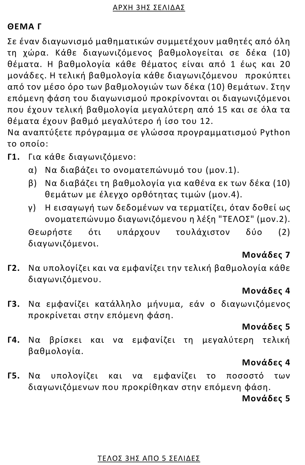 Δείτε τα θέματα του μαθήματος ΠΡΟΓΡΑΜΜΑΤΙΣΜΟΣ ΥΠΟΛΟΓΙΣΤΩΝ