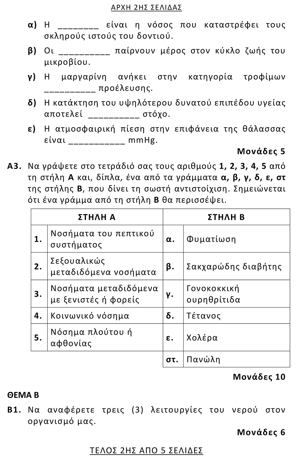 Δείτε τα θέματα του μαθήματος ΥΓΙΕΙΝΗ