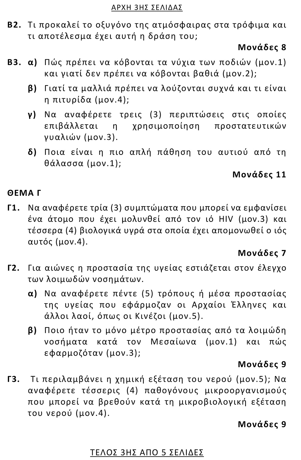 Τα σημερινά θέματα της υγιεινής είναι αρκετά βατά και καλύπτουν μεγάλο εύρος της ύλης, σύμφωνα με την ΟΕΦΕ (Ομοσπονδία Εκπαιδευτικών Φροντιστών Ελλάδος). Έχουν κάποιες λεπτομέρειες αλλά για κάποιον ο οποίος έχει μελετήσει σωστά δεν θα υπάρχει σημαντικό πρόβλημα στο να γράψει αρκετά υψηλή βαθμολογία.