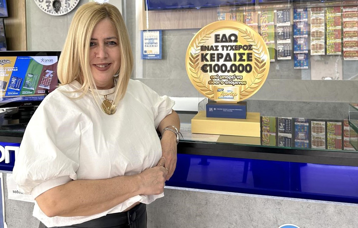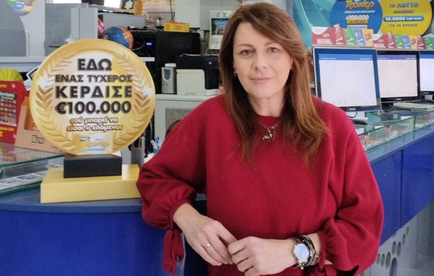 «Η επιτυχία που κατέγραψε το κατάστημά μας με την ανάδειξη του νικητή που κέρδισε 100.000 ευρώ στη δεύτερη κατηγορία του ΤΖΟΚΕΡ, αύξησε κατακόρυφα την επισκεψιμότητα», τονίζει η κα Γεωργία Σοφού, ιδιοκτήτρια τυχερού καταστήματος ΟΠΑΠ στο Περιστέρι.