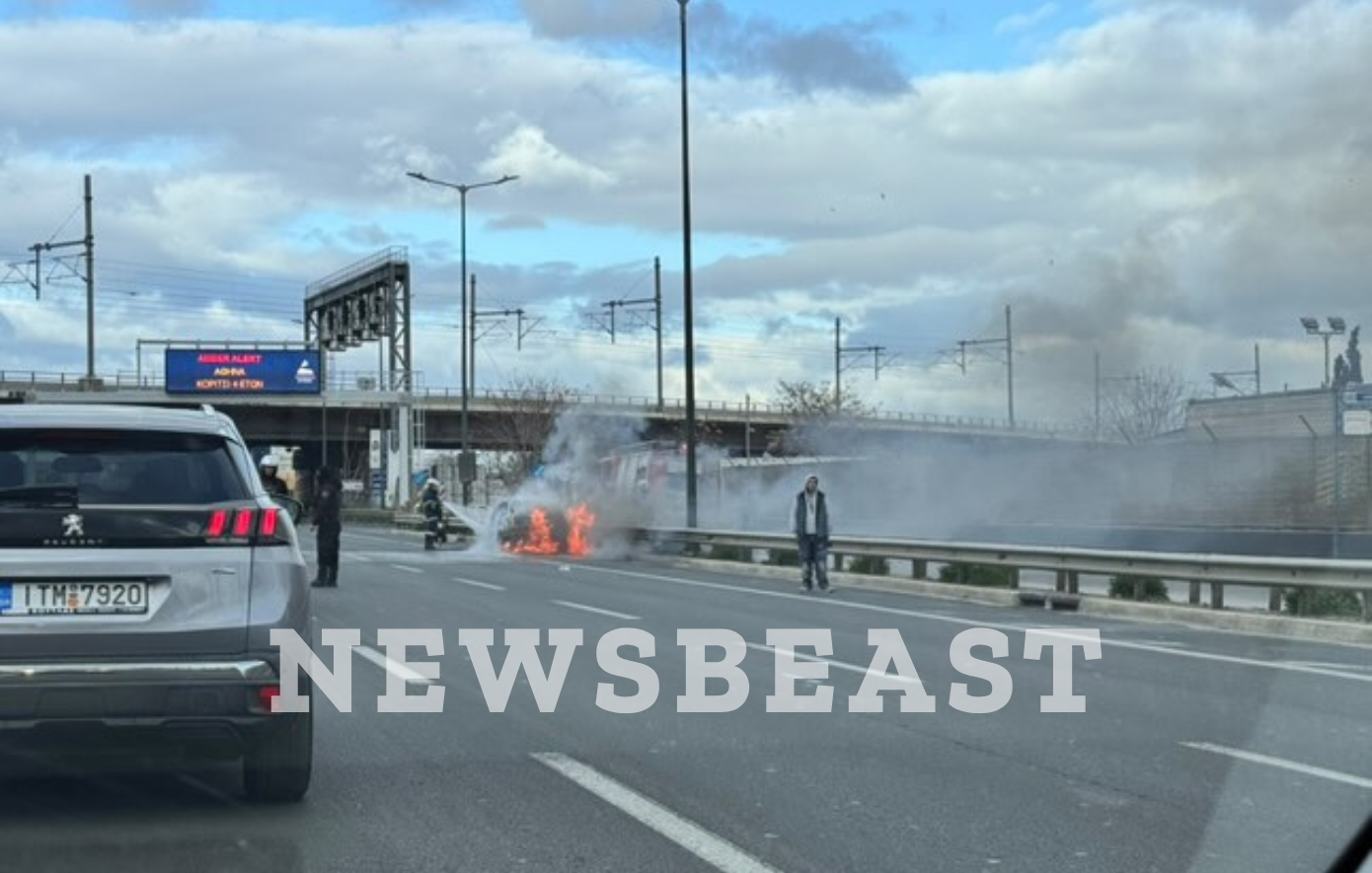 Στις φλόγες τυλίχθηκε αυτοκίνητο στη λεωφόρο Κηφισού στο ρεύμα προς Λαμία το μεσημέρι του Σαββάτου.