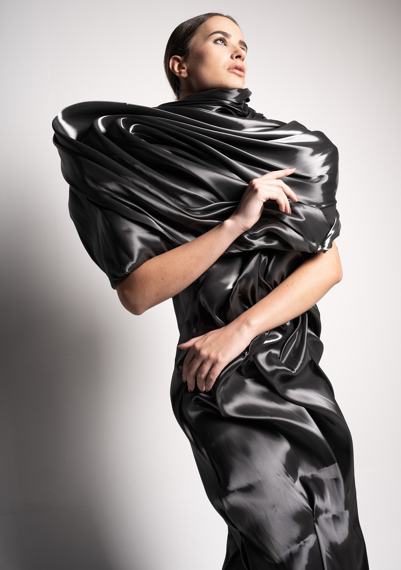 Μέσα από τις γλυπτικές φόρμες επιδιώκω να ερμηνεύσω τη σχέση του σώματος με το περιβάλλον, τις μεταβολές σε σχέση με αυτό. Οι δημιουργίες μου δε λειτουργούν στο να ντύνουν απλώς το σώμα, αλλά γίνονται οργανικά κομμάτια αυτού ως συνέχεια του. Σχήματα εμπνευσμένα από οργανικές υφές, υφάσματα που προσαρμόζονται ανάλογα με το φως και τις αντανακλάσεις δίνοντας μια νέα ζωή στο ένδυμα, δομές που κινούνται με τον αέρα και άλλοτε στέκονται έξω από το σώμα. Η φύση λειτουργεί ως προέκταση αυτού, συμβολίζοντας έννοιες όπως η μεταμόρφωση, η αναγέννηση και η άνθιση μέσα σε μια εποχή που όλα εξελίσσονται με γρήγορους ρυθμούς. Είναι σημαντικό να μπορείς να ορίσεις την ταυτότητα σου μέσα στο σύνολο και όχι να προσαρμόζεσαι απλώς σε αυτό.