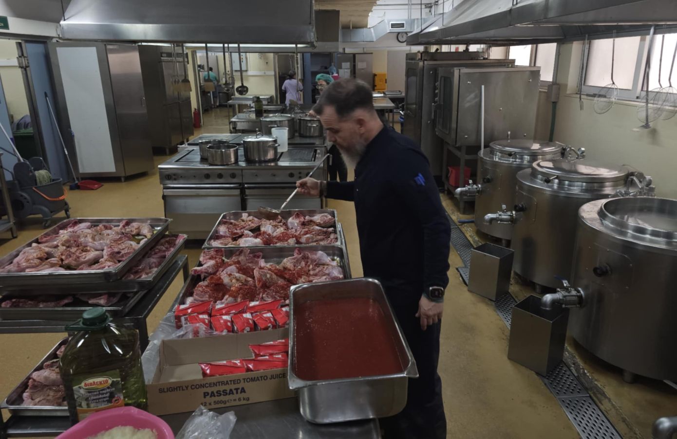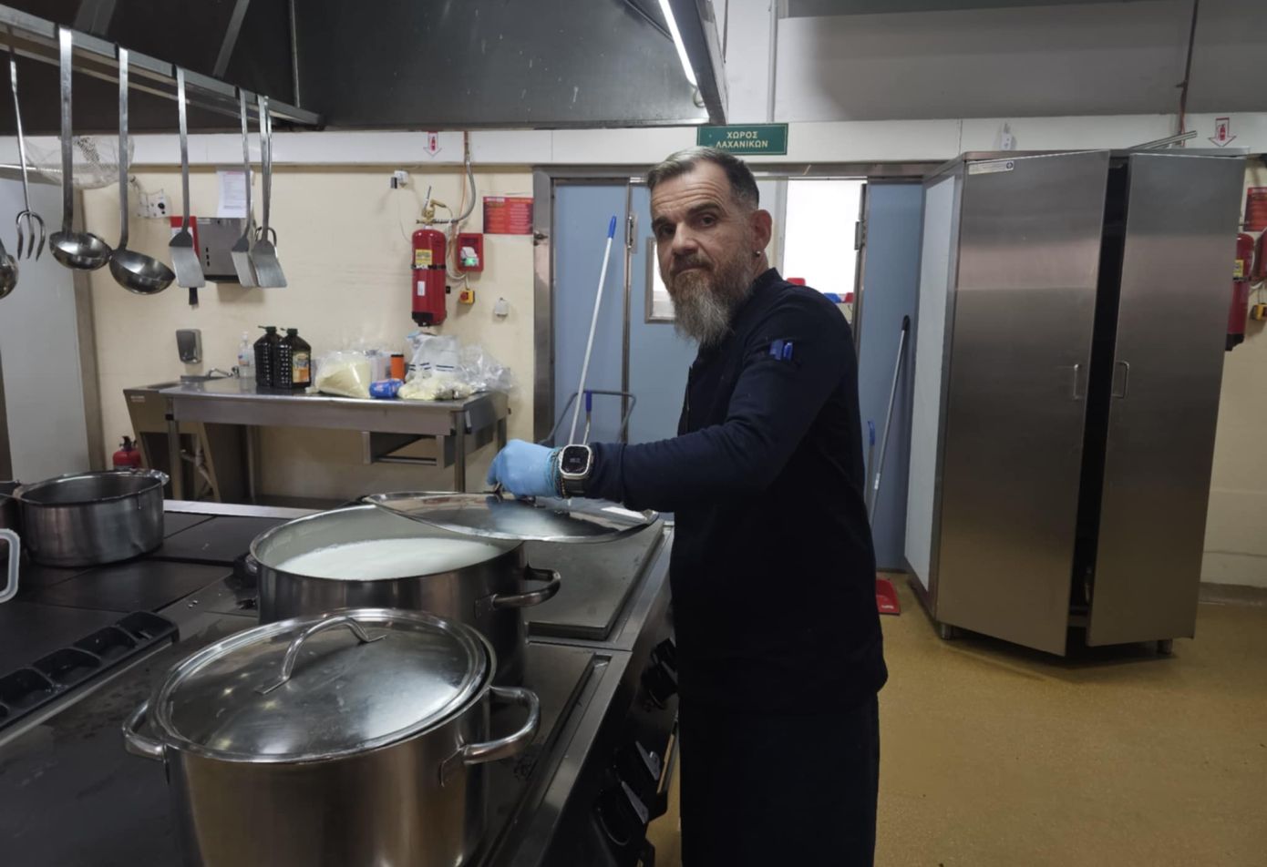Το Newsbeast τον επισκέφθηκε στο χώρο δράσης του, στο μαγειρείο του Τζάνειου Νοσοκομείου, εκεί όπου μαζί με το επιτελείο του δημιουργεί πιάτα που θα ζήλευαν και τα πιο ακριβά εστιατόρια.