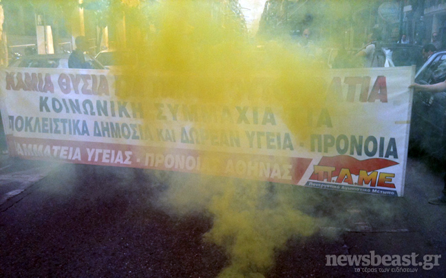 Έξω από το υπουργείο Υγείας στην οδό Αριστοτέλους βρίσκονται συγκεντρωμένοι εργαζόμενοι στα δημόσια νοσοκομεία διεκδικώντας την καταβολή δεδουλευμένων από υπερωριακή εργασία των τελευταίων έξι μηνών.