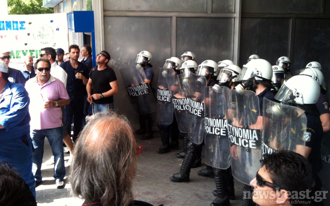 Αποκλεισμένος είναι αυτή την ώρα ο δρόμος μπροστά από το υπουργείο Οικονομικών, στη οδό Νίκης, λόγω της συγκέντρωσης των εργαζομένων στα ναυπηγεία Ελευσίνας και στα Τουριστικά Ακίνητα.
