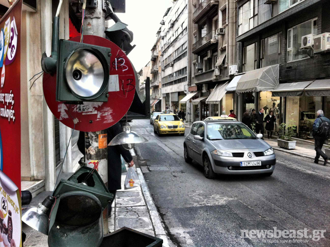 Από τα επεισόδια της περασμένης Κυριακής, όπως φαίνεται από τις φωτογραφίες του newsbeast.gr, δεν καταστράφηκαν και λεηλατήθηκαν μόνο καταστήματα και επιχειρήσεις αλλά και οι φωτεινοί σηματοδότες με αποτέλεσμα σήμερα η κυκλοφορία στο κέντρο να διεξάγεται με δυσκολία.