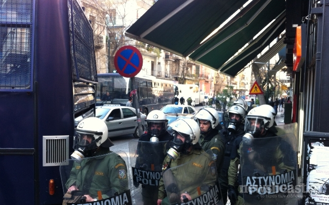 Κλούβες της αστυνομίας έχουν παραταχθεί κάθετα στο δρόμο της οδού Αχαρνών, δημιουργώντας μπλόκο, με σκοπό να ανακόψουν την διαδρομή της διαδήλωσης. Σημειώνεται ότι σε «απάντηση» της σημερινής πορείας, η Χρυσή Αυγή και ακροδεξιές ομάδες ετοιμάζουν αντισυγκέντρωση στην περιοχή του Αγίου Παντελεήμονα.