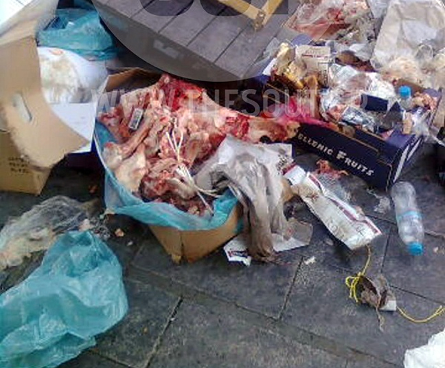 Οι συγκεκριμένες φωτογραφίες και βίντεο δείχνουν, ίσως με τον πιο γλαφυρό τρόπο, την κρίση, σε πολλαπλά επίπεδα, όπου έχει χτυπήσει την ελληνική κοινωνία. Όπως επίσης δείχνουν και την πλήρη αδιαφορία κάποιον για να βοηθήσουν τον συνάνθρωπό τους. Οι εικόνες αυτές είναι τραβηγμένες με κινητό τηλέφωνο, στην καρδιά της Θεσσαλονίκης στην Πλατεία Αριστοτέλους και συγκεκριμένα στο Καπάνι, όπου είναι μαζεμένα όλα τα κρεοπωλεία, εστιατόρια και άλλα μαγαζιά. Όπως καταγγέλλουν, μετά τις 18:00, οι κρεοπώλες πετούν τα κρέατα που τους έχουν απομείνει ή έχουν χαλάσει στους κάδους των σκουπιδιών που βρίσκονται σε κεντρικό σημείο του πεζόδρομου. Όμως δεν τα πετούν, όπως κάνουν οι νοικοκυρές στο σπίτι τους, δηλαδή μέσα σε μία σακούλα, αλλά τα εναποθέτουν με μεγάλους πλαστικούς κουβάδες πανω στους κάδους των σκουπιδιών. Φυσικά βλέπετε και στις εικόνες, τα κρέατα ξεχειλίζουν και πέφτουν κάτω. Έτσι από τις 18:00 έως περίπου τις 21:00 όπου θα περάσει το απορριμματοφόρο, το συγκεκριμένο σημείο είναι μία υγειονομική «βόμβα» έτοιμη να εκραγεί, αφού τα κρέατα μένουν εκτεθειμένα χωρίς καμία προστασία. Και δεν είναι μόνο αυτό. Αδέσποτα σκυλιά που βρίσκονται στην περιοχή, ορμάνε και παίρνουν όσα κομμάτια από κρέας μπορούν και τα διασκορπίζουν κατά μήκος της πλατείας Αριστοτέλους. Όμως η χειρότερη εικόνα (αυτή που βλέπουμε και στις φωτογραφίες), είναι ηλικιωμένοι συνταξιούχοι, που αφήνουν στην άκρη την αξιοπρέπεια τους και μαζεύουν από τους κάδους τα κρέατα για να τα πάνε στο σπίτι τους και να φάνε. Αυτή η εικόνα, όπως καταγγέλλουν και άλλοι Θεσσαλονικείς, είναι καθημερινό φαινόμενο και δείχνει την τραγική οικονομική κατάσταση που έχουμε έλθει σαν πολίτες. Ποιοι φταίνε για αυτά τα χάλια; Πρώτον ο Δήμος Θεσσαλονίκης, όπου πρέπει άμεσα να οργανώσει και να αξιοποιήσει το εργατικό δυναμικό που έχει στον τομέα της καθαριότητας, ώστε να αποφεύγονται, όσο το δυνατόν γίνεται, αυτές οι άθλιες εικόνες μίας τριτοκοσμικής Θεσσαλονίκης. Δεν γίνεται από την μία να θέλουμε να φέρουμε τουρίστες και ξένο συνάλλαγμα στην πόλη και από την άλλη οι τουρίστες να περνούν από το συγκεκριμένο σημείο, να φωτογραφίζουν τα συγκεκριμένα χάλια και να γινόμαστε παγκοσμίως ρεζίλι. Δεύτερον, οι κρεοπώλες θα έπρεπε να σέβονται περισσότερο τους συμπολίτες τους και να προστατεύουν την δημόσια υγεία, βάζοντας απλά τα κρέατα τους σε μαύρες σακούλες. Σύμφωνα με τον αναγνώστη που έστειλε τις εικόνες στο thesout.gr, δυστυχώς ελάχιστοι κρεοπώλες τηρούν τα αυτονόητα. Και τρίτον, μάλλον θα πρέπει η Υγειονομική υπηρεσία της Περιφέρειας Κεντρικής Μακεδονίας, να πραγματοποιήσει περισσότερους ελέγχους τις «δύσκολες ώρες» στα μαγαζιά που βρίσκονται στην περιοχή, για να περιοριστεί το συγκεκριμένο φαινόμενο. Από την μία να βλέπουμε την στολισμένη Χριστουγεννιάτικη Θεσσαλονίκη με τα παιδιά να παίζουν και από την άλλη τα σκουπίδια και τους ηλικιωμένους να προσπαθούν να βρουν κάτι για να φάνε.