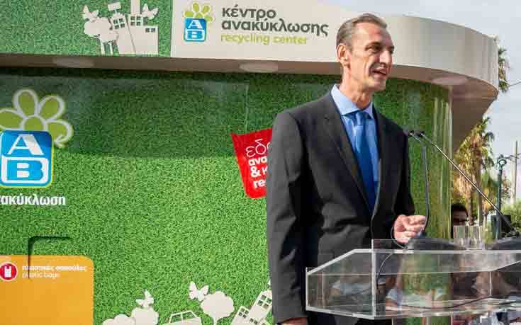 Ο Βασίλης Σταύρου, Πρόεδρος και Διευθύνων Σύμβουλος της ΑΒ Βασιλόπουλος, κατά την ομιλία του στο πλαίσιο της εκδήλωσης για την έναρξη της λειτουργίας του 88ου Ολοκληρωμένου Κέντρου Ανταποδοτικής Ανακύκλωσης