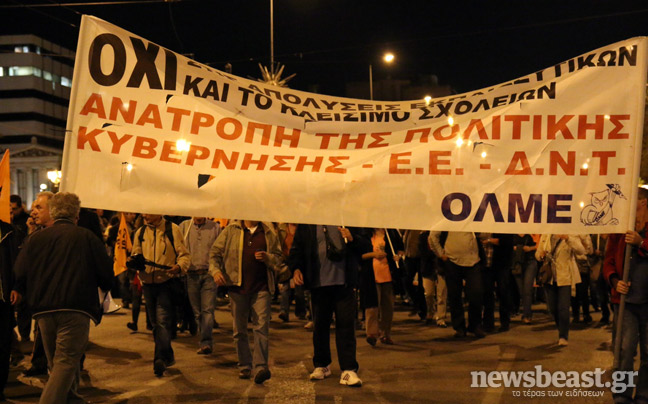 Στα Προπύλαια στις 6 η ώρα έδωσαν σήμερα ραντεβού δάσκαλοι και καθηγητές (ΔΟΕ και ΟΛΜΕ) για το πανεκπαιδευτικό συλλαλητήριο κατά της πολιτικής της κυβέρνησης στην Παιδεία.