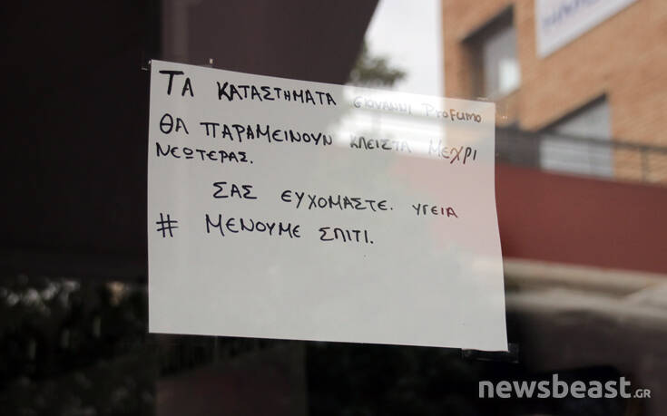 Όλα τα καταστήματα στη χώρα μας είναι κλειστά λόγω των μέτρων που έχουν ληφθεί με στόχο την αποφυγή της εξάπλωσης του φονικού κορονοϊού και έτσι πολλοί καταστηματάρχες ενημερώνουν τους πολίτες και τους συστήνουν να μείνουν σπίτι.