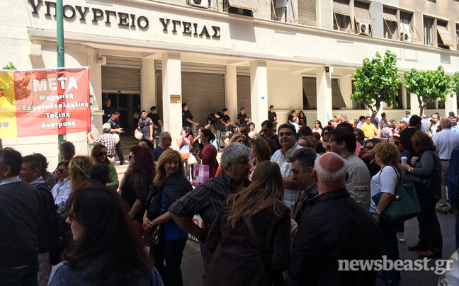 Συγκέντρωση στο υπουργείο Υγείας πραγματοποιούν αυτή την ώρα εργαζόμενοι στα δημόσια νοσοκομεία.