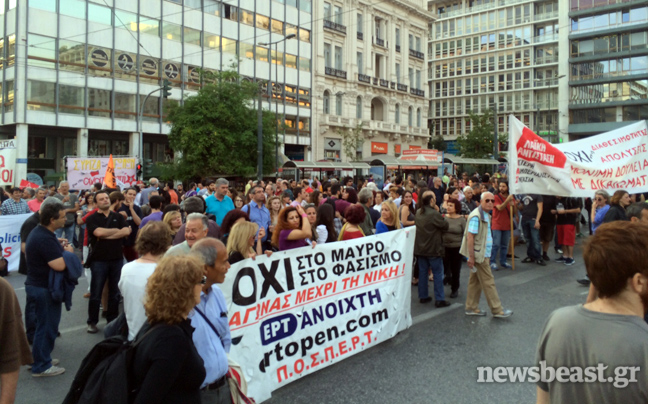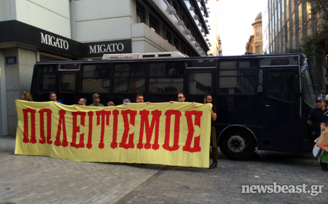 Διαδηλωτές βρίσκονται συγκεντρωμένοι έξω από το υπουργείο Οικονομικών, και σε λίγο αναμένεται να ξεκινήσει η συναυλία αλληλεγγύης που είχε προγραμματιστεί, με τη συμμετοχή γνωστών καλλιτεχνών.