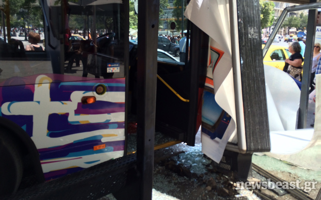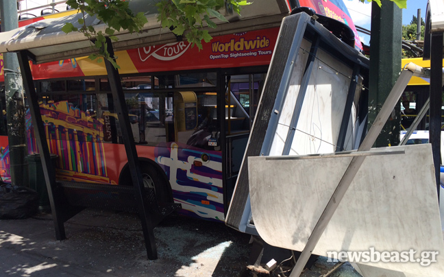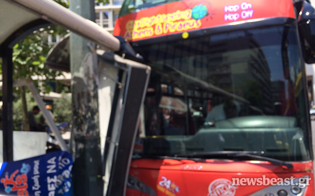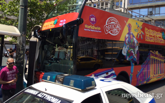 Πανικός δημιουργήθηκε για λίγα λεπτά στο Σύνταγμα, όταν ένα τουριστικό λεωφορείο σε διαδρομή αξιοθέατων ξέφυγε από την πορεία του και έπεσε πάνω σε στάση.