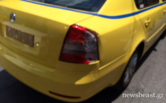 Το τουριστικό λεωφορείο έπεσε επάνω σε ένα σταθμευμένο ταξί και προκάλεσε ζημιές σε αυτό καθώς και στη στάση.