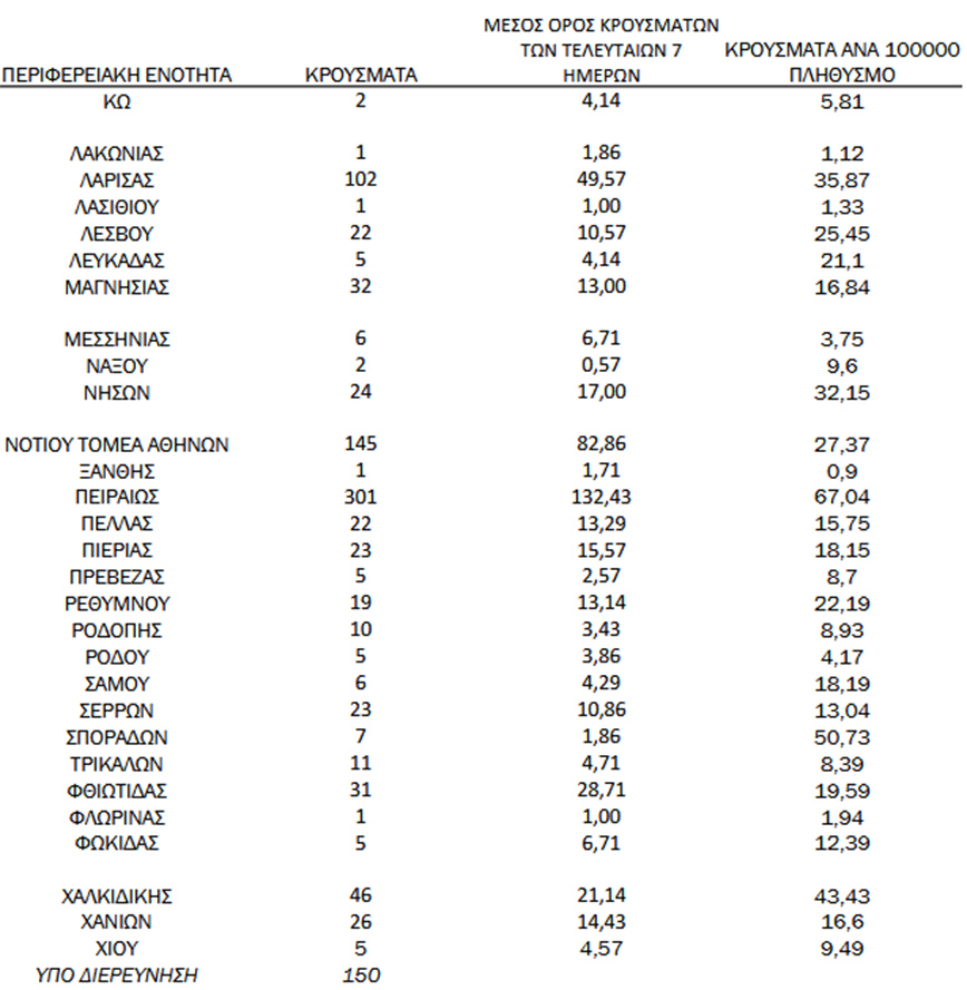 - 149 κρούσματα στην Π.Ε. Αχαΐας