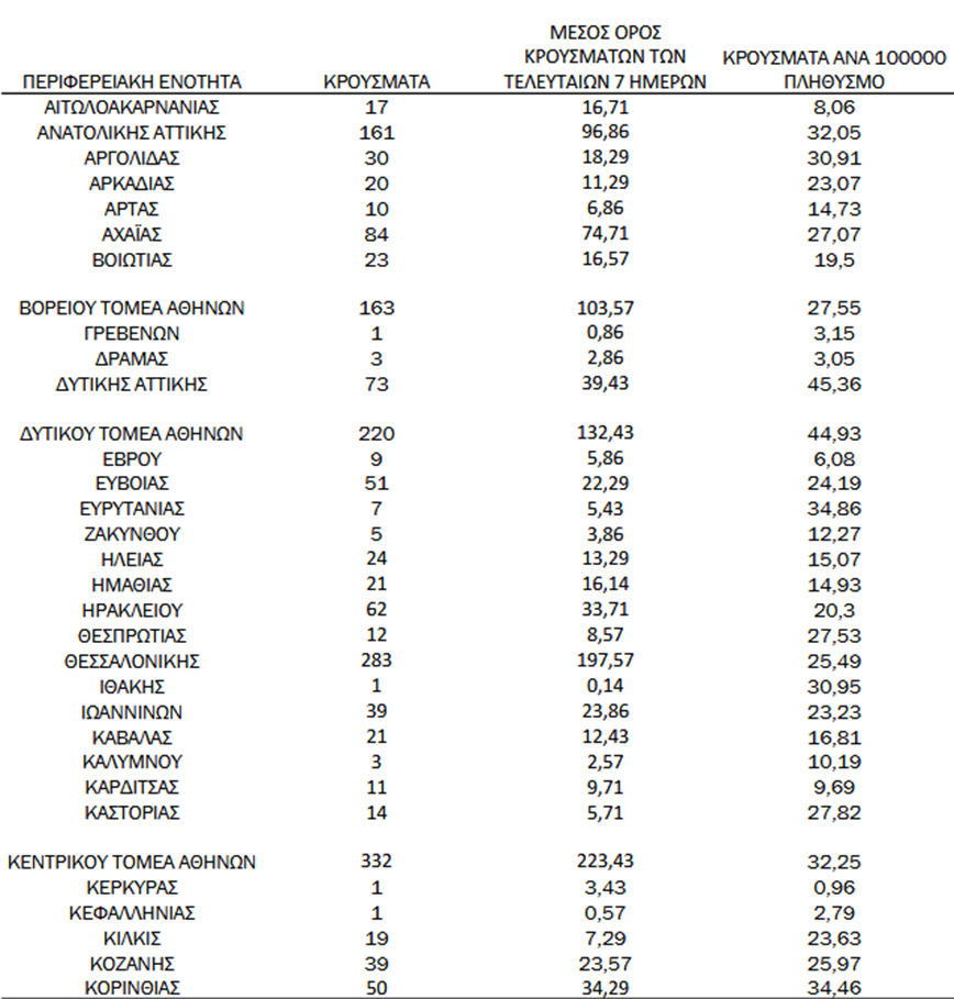 - 84 κρούσματα στην Π.Ε. Αχαΐας