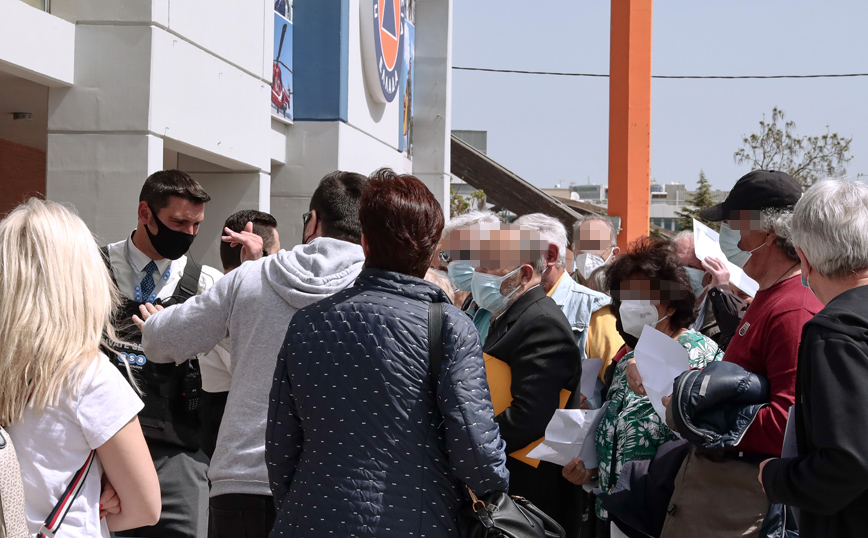 Ουρές σχηματίστηκαν σήμερα το πρωί στο Μέγα Εμβολιαστικό Κέντρο Προμηθέας στο Μαρούσι από τους πολίτες που είχαν κλείσει ραντεβού για το εμβόλιο κατά του κορονοϊού. Οι πολίτες καλούνταν να κρατήσουν τις απαραίτητες αποστάσεις ασφαλείας, φορώντας πάντα μάσκα, πριν την είσοδό τους στο κτίριο.