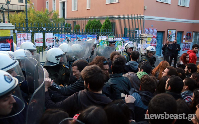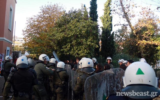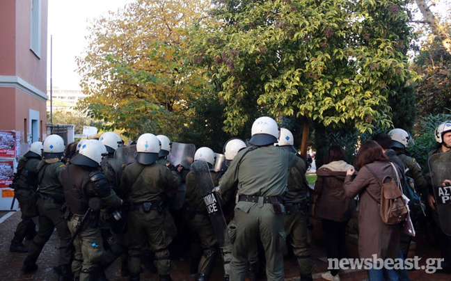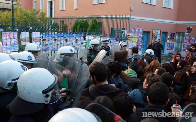 Οι φοιτητές θέλησαν να μπουν στη Σχολή και απωθήθηκαν από τις αστυνομικές δυνάμεις, που έκαναν χρήση χημικών. Αυτή τη στιγμή είναι κλειστή η Ακαδημίας, όπου έχουν συγκεντρωθεί φοιτητές, κρατώντας πανό που γράφει «Έξω η αστυνομία από το Πανεπιστήμιο-Παραίτηση Φορτσάκη τώρα-κάτω η κυβέρνηση».