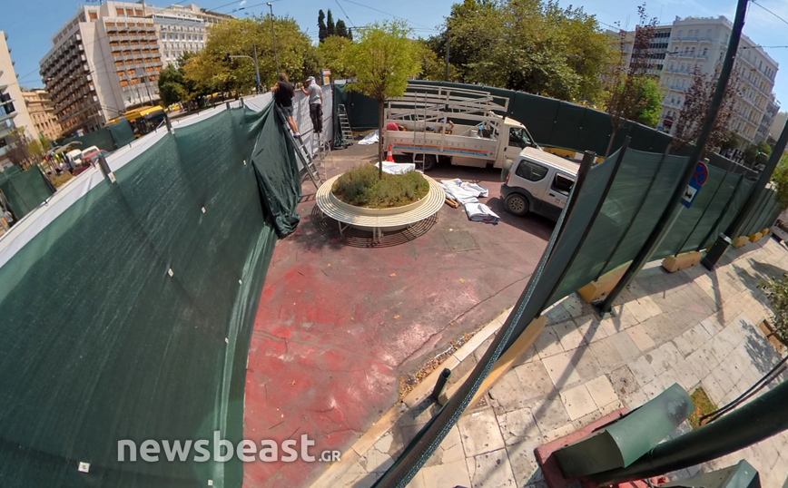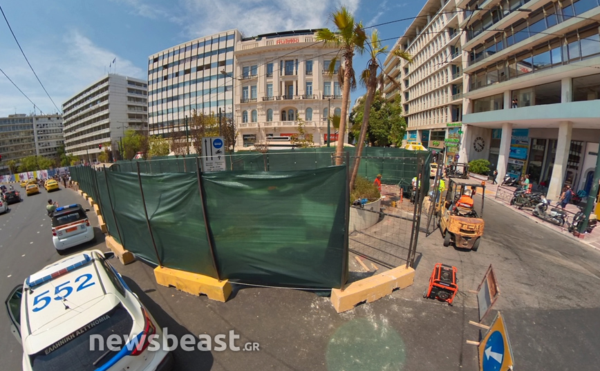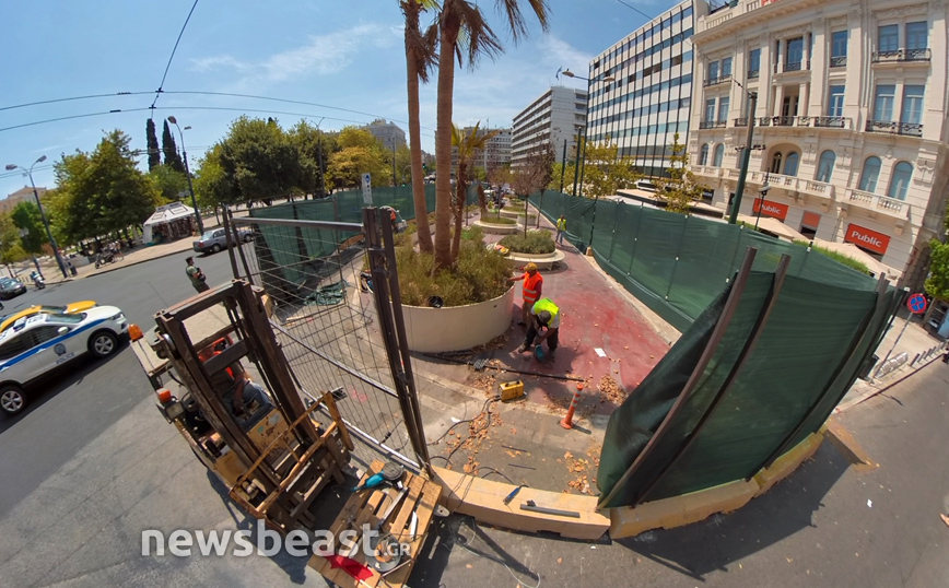 Εικόνες από τα έργα ανάπλασης της κάτω πλατείας Συντάγματος της Αθήνας, που αφορούν το δημόσιο χώρο τον οποίο οριοθετούν οι οδοί Φιλελλήνων, Καραγιώργη Σερβίας και Μητροπόλεως, κατέγραψε την Πέμπτη (12/8) η κάμερα του Newsbeast.
